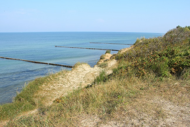 Die Westküste des Fischlandes ist eine aktive Steilküste. Der am Kliff anstehende Geschiebemergel, der der Mecklenburger Phase zugeordnet wird, ist nicht sehr erosionsbeständig, was bei Hochwasser zu schollenartigen Rutschungen des Materials (Abb. 3) und zur Bildung von Kliffhalden führt. Begünstigt wird dies durch die parallel zum Kliff angelegte Küftung des Geschiebemergels. Der feinklastische Anteil des abgerutschten Sedimentes wird durch das Meer schnell fortgeführt, der an dieser Stelle eher geringe Anteil an Geschieben bleibt am Strand zurück.