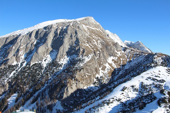 Zwei unterschiedliche Faziestypen treten somit auf: gebankte Dachsteinkalke und massige Riffkalke. Beide sind altersgleich. Die Riffkalke repräsentieren ehemalige Riffbauten, die gebankten Dachsteinkalke Lagunenbereiche, die die Riffe umgaben und die gelegentlich trocken fielen. Riffkalke sind auf deutscher Seite hauptsächlich verbreitet am Hohen Göll und am Hohen Brett (Abb. 2), wo ihre Mächtigkeit mehr als 1200 m erreicht.